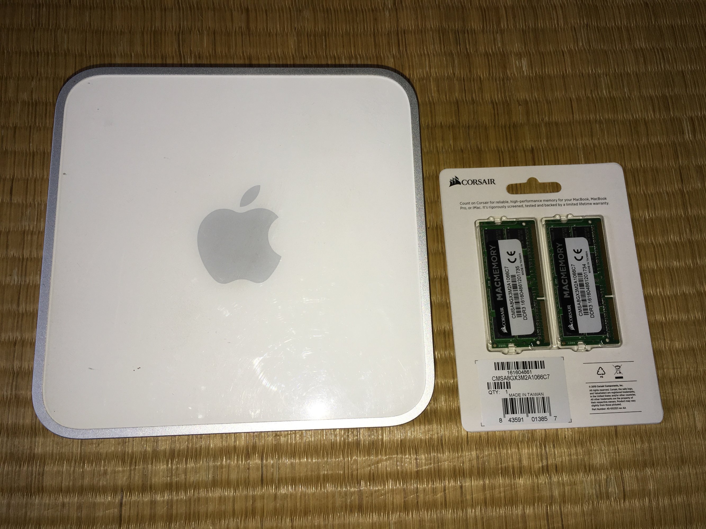 よく調べてみたら、mac miniのメモリはDDR3 SO-DIMM 1066MHzなのに、買ったメモリはDDR3 SO-DIMM 1600MHzだった。これじゃ合わないよね〜(でも1333MNzは認識するらしい)。